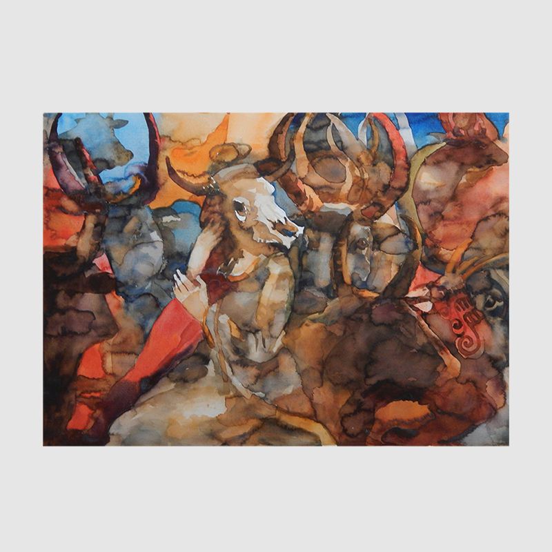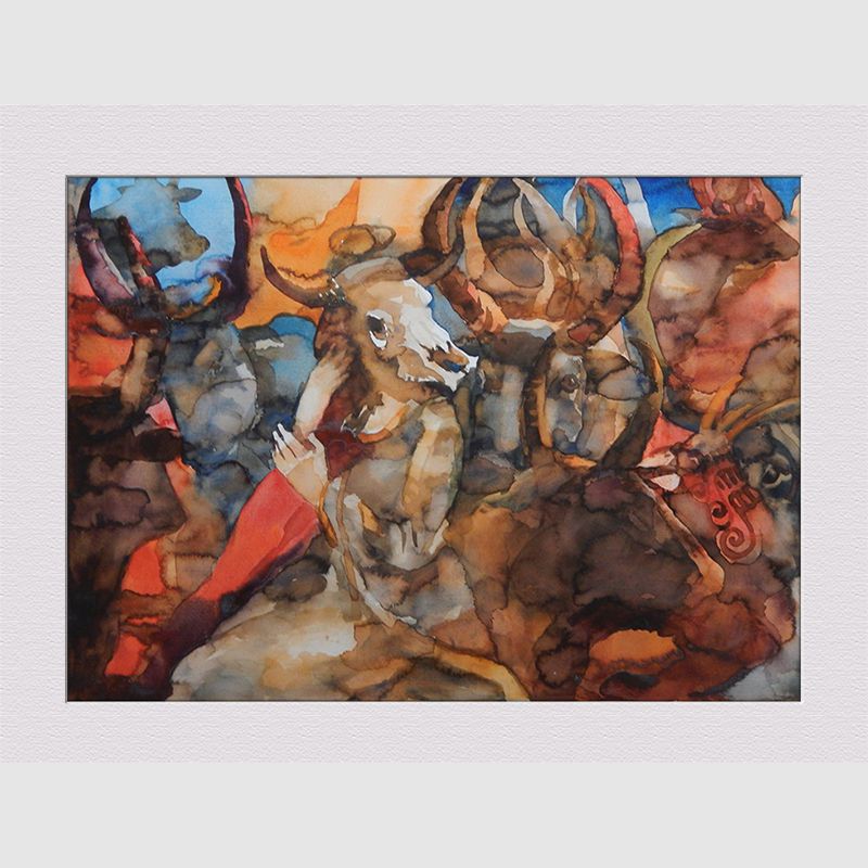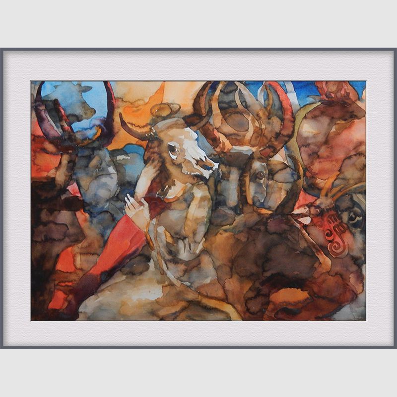 Akvarelė “EKLIPTIKA. MERGIŠKOS GODOS. JAUTIS”