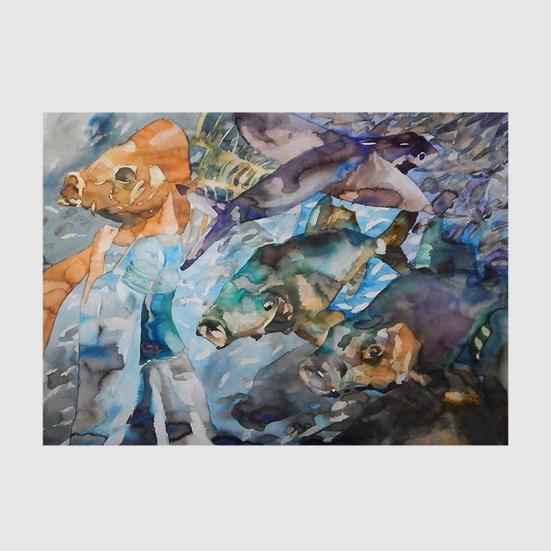 Akvarelė “EKLIPTIKA. MERGIŠKOS GODOS. ŽUVYS”